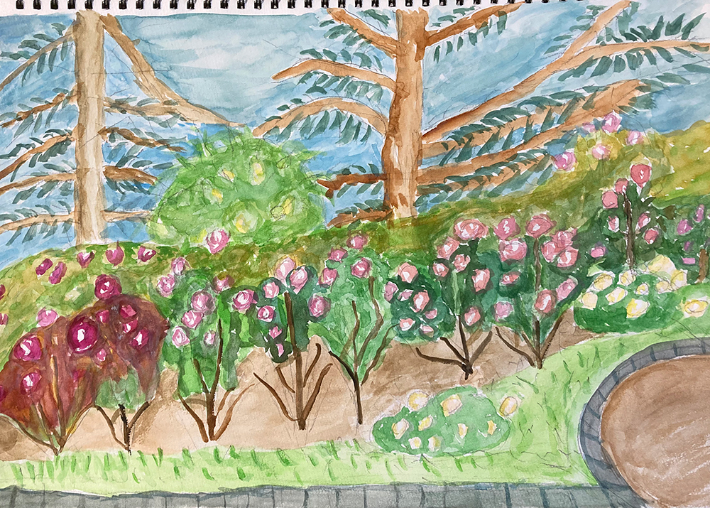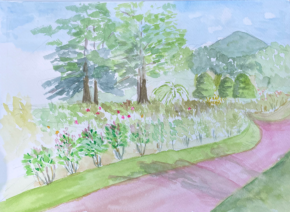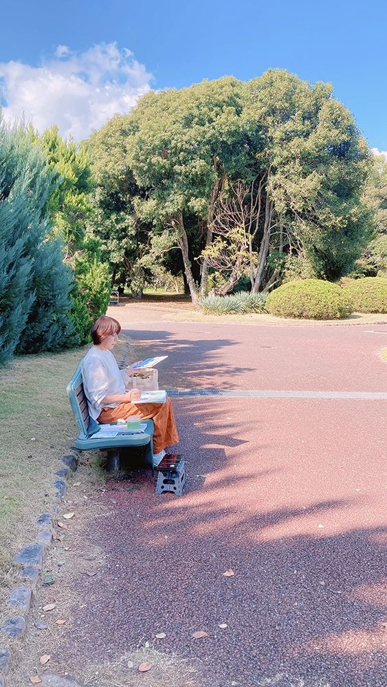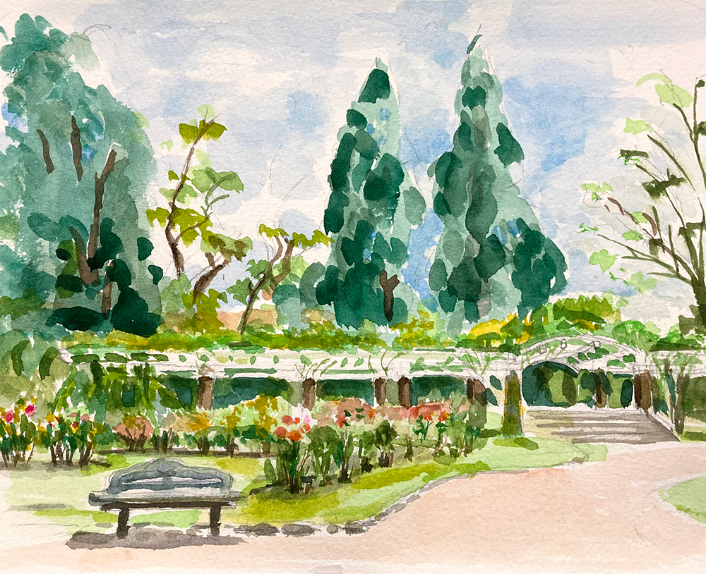 10月は北山の京都府立植物園に出かけました。とっても爽やかな秋晴れの日。バラ園、良い香りにつつまれて最高に気持ち良くスケッチできました!