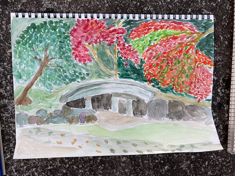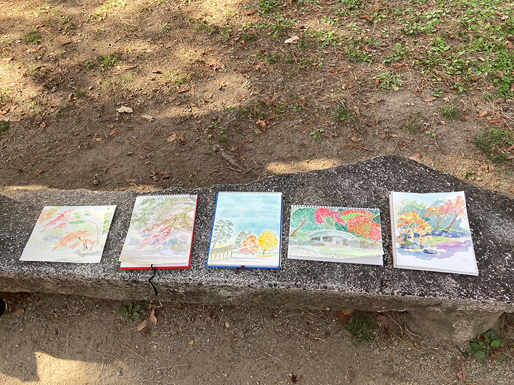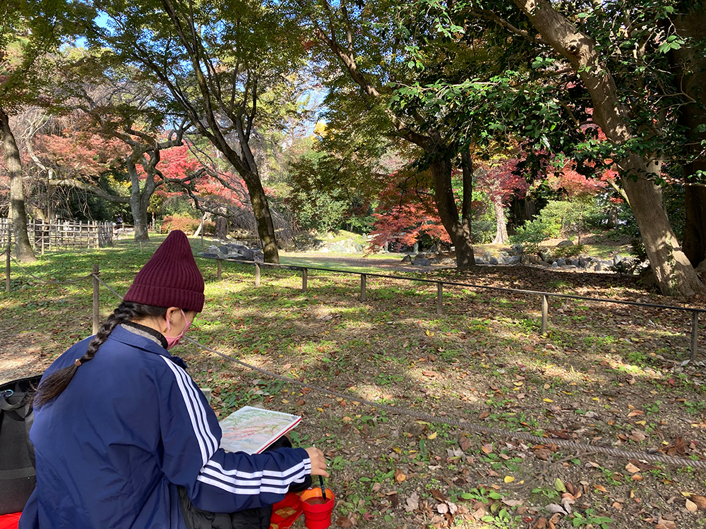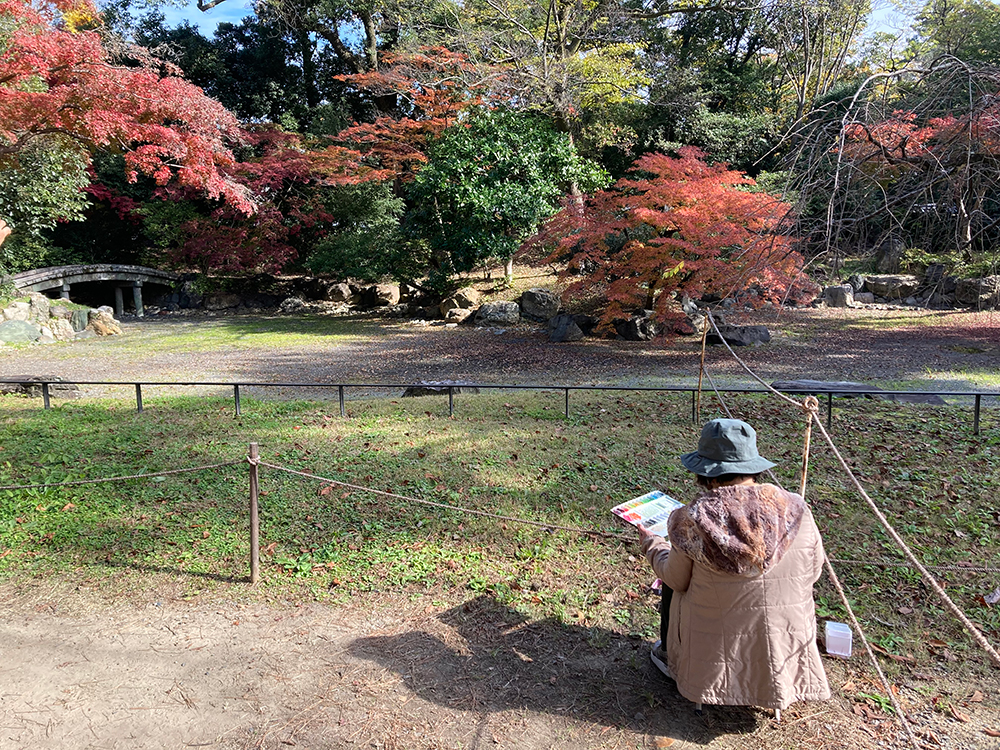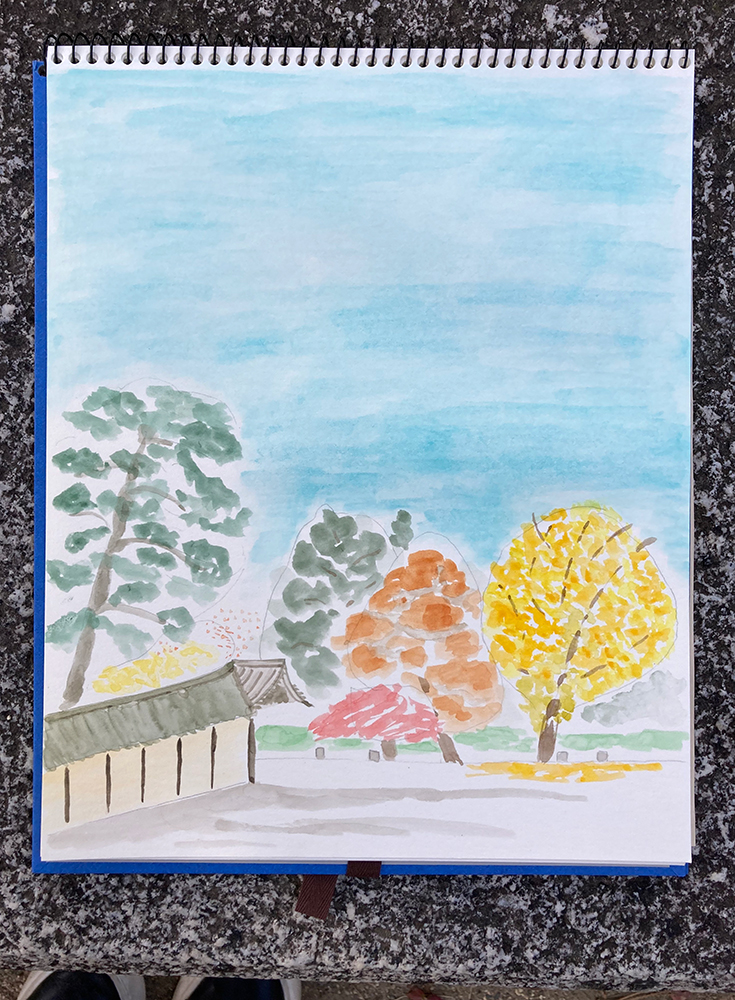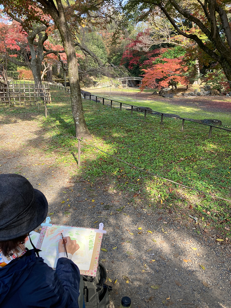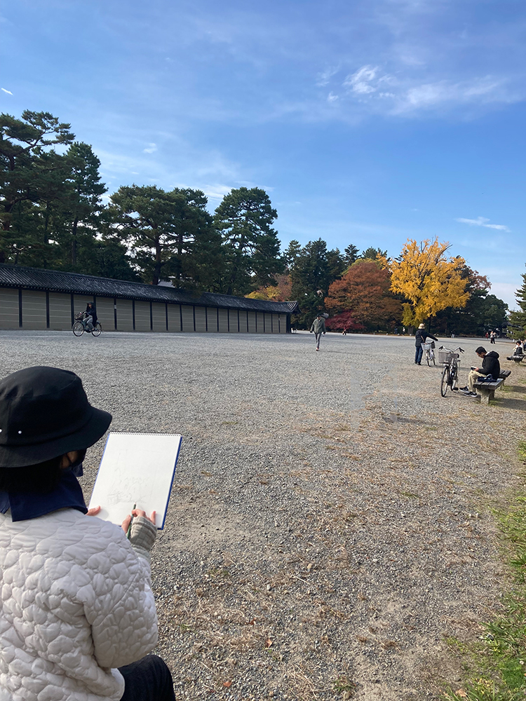 紅葉の美しい時季。京都御苑でスケッチしました。