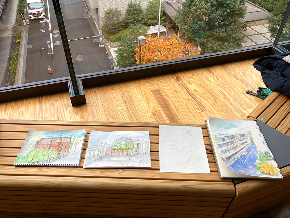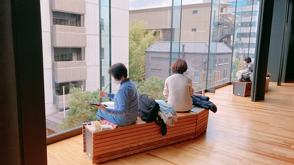 寒い冬の時季、室内でスケッチできる所を探し求めていると…