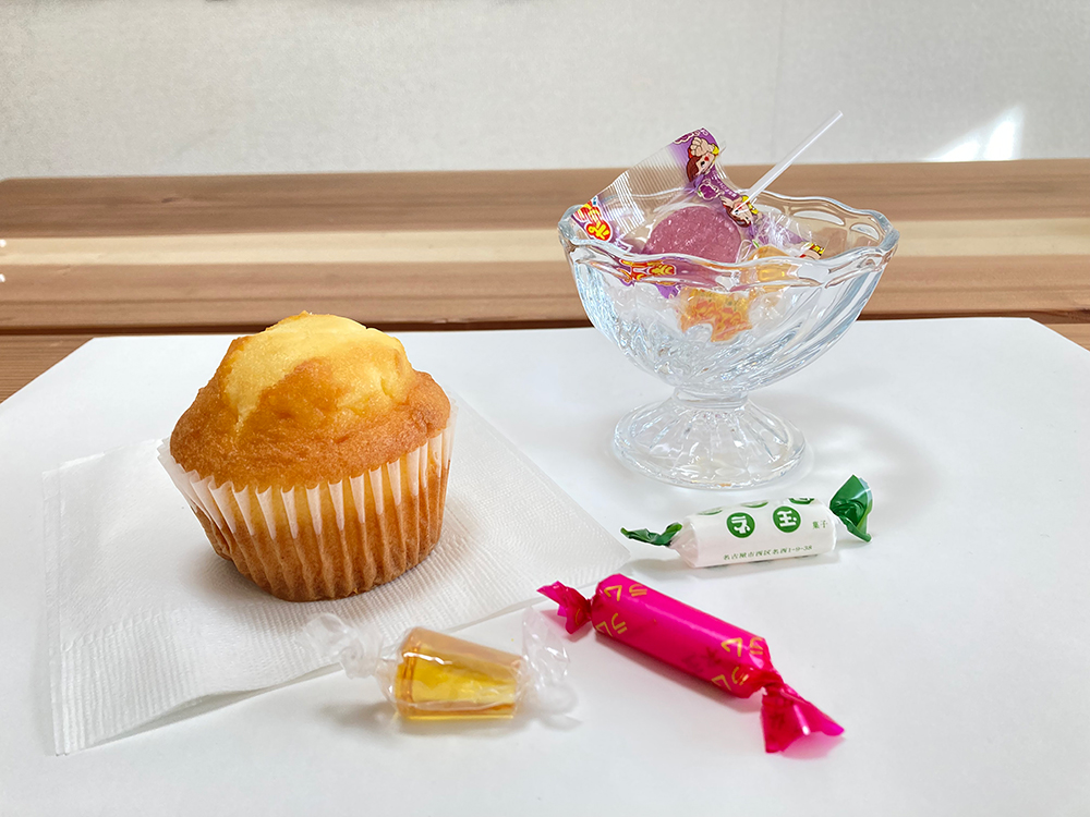 今月のモチーフはスイーツ。レッスン2年目以降の方は自由です。お花を用意しました。
