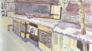 こんにちは、京都烏丸御池のスケッチ教室アトリエセンの則武千鶴です。8月のレッスン風景と作品のご紹介です。先月大好評だった「川端滝三郎商店」さまでのスケッチ。前回参加できなかった生徒さんがおられたので8月も同じ場所で行いました。残暑どころか夏...